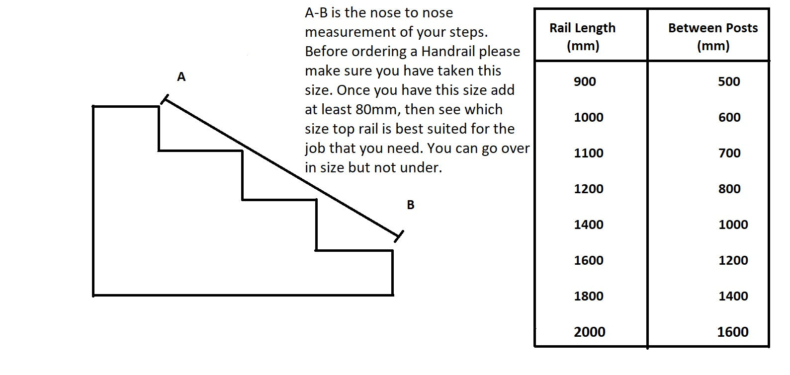 If you are unsure what length of Handrail that you need please see our Measuring Handrail This can be found on our home page under Guides and tips.